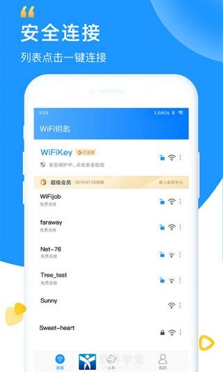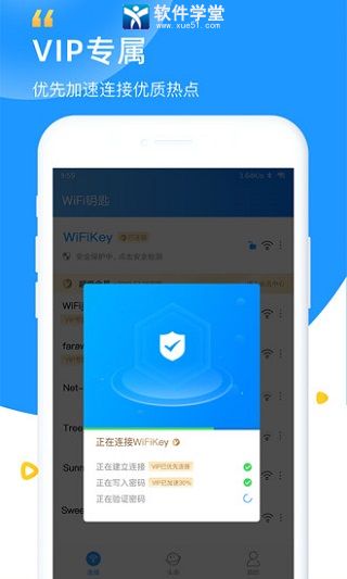 WiFi钥匙软件是由厦门众联世纪科技开发的一款非常实用的WiFi连接工具。与市面上的会泄露用户隐私的wifi连接软件不同,该软件通过国家信息安全等级保护三级标准验收,严格遵守国家有关互联网安全法规,不但能够充分保证消费者的网络信息安全,也绝对不会出现盗取用户的手机隐私的现象发生。该软件还与国内各大知名流量厂商都有合作,可以随时随地的免费连接共享热点,支持用户一键上网。简单便捷的使用操作,让我们只需打开wifi,即可自动对区域内的wifi热点进行自动匹配连接,一键极速上网。全新升级的简洁界面,强大的使用功能,还可自动检测到周围热点信号,任意选择点击你想要连接的热点,同时还可对我们所连接的热点进行测速扫描,让你能够放心畅游互联网。除此之外,在WiFi钥匙软件内还有密码找回、WiFi信号增强等其他更多丰富功能等你来探索体验!