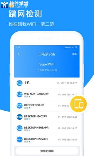 5、安全检测智能监测WiFi安全,钓鱼WiFi、APR攻击等实时检测,防蹭网、WiFi保镖保护自有WiFi安全不被蹭网。
