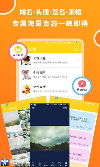 5、提供了网名、头像、签名、表情等各种资源,每个分类中都有细致的风格分类。