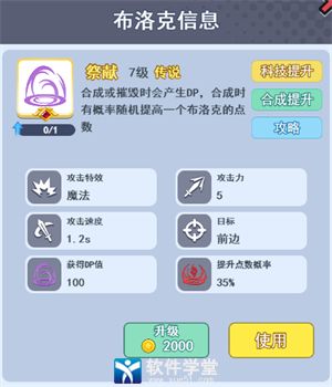 合成或摧毁祭献布洛克可以获得大量DP并且有概率使场上随机布洛克提升点数。