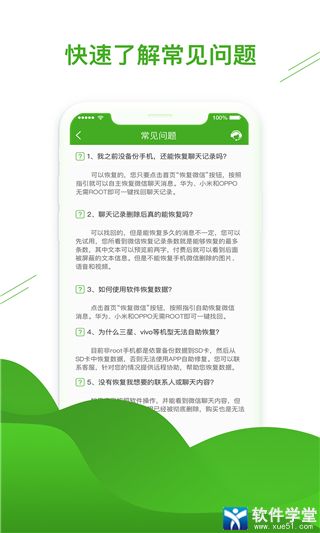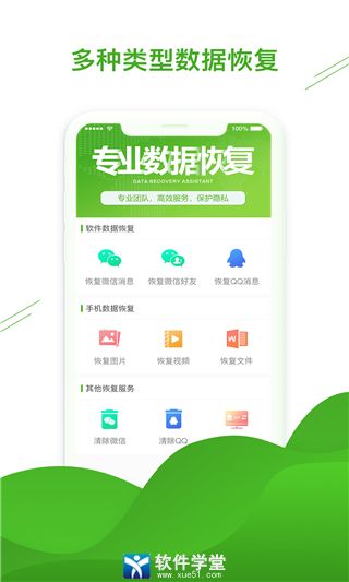 手机照片恢复、手机视频恢复、聊天记录恢复、消息部分清除、消息彻底清除等多项服务功能,并为用户提供7x18小时专业工程师为您的数据恢复护航,还有人工专业指导,可一对一服务,为您解决数据找回过程中的各种疑难问题,也可大大提升您的数据恢复几率。简单的使用操作,可支持一键扫描恢复,还能导出各种数据,功能非常强大。目前,聊天恢复助手软件已为百万级别用户提供找回丢失或删除的数据,有需要的朋友欢迎前来下载。