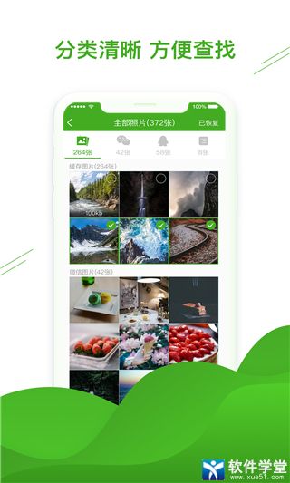 1、图片恢复:照片恢复、缓存照片恢复、聊天图片恢复、QQ图片等。
