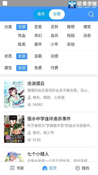 5、分类覆盖面非常广泛,包括青春校园、恋爱言情、科幻神奇等。
