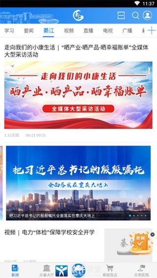 大美綦江app是专为綦江本地市民用户们打造的一款便捷智能化生活服务资讯类软件应用,该软件内容丰富多样,为用户提供了全网海量最新资讯内容,你想要了解的各类新闻资讯都可以在这里找到。同时软件还为用户提供了更多便捷的本地生活服务功能,如生活缴费、社保医疗查询、交通出行等等,都可以轻松满足你的各种不同需求。