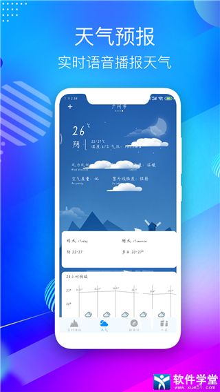 3、天气预报:支持所有城市天气信息,天气预报信息准确全面,24小时预报、未来天气预报等。