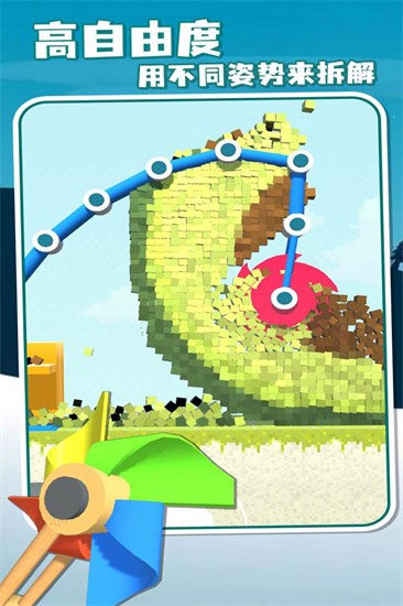 1、玩家在游戏中需要控制拆迁车辆,将面前的所有墙体全部拆除,游戏拥有相当有趣的玩法