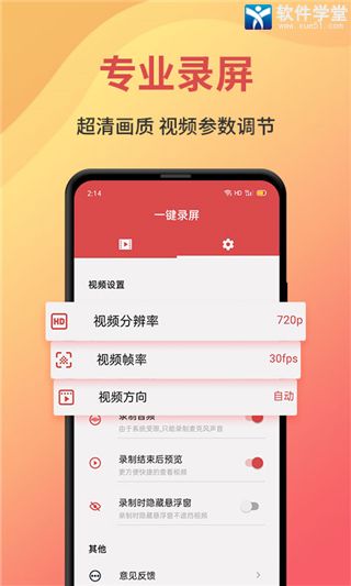 【专业录屏】超高清画质流畅录制,支持多种视频分辨率、码率和帧率选择。