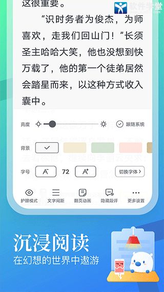 【精美界面】流畅舒适的界面满足你 背景颜色主题的切换 字体 字号的随意变换 夜间模式等功能给你无与伦比的阅读享受,畅享品质阅读。