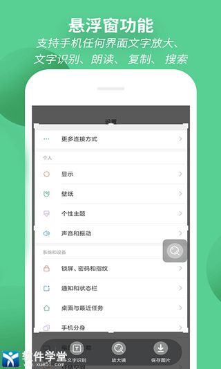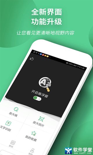 2、提供实时放大镜、图片放大、屏幕放大镜、图片识别文字、照片识别文字。