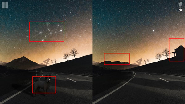 3、两幅画面找茬,很简单的玩法。
