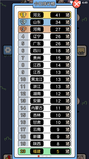 3、猪了个猪官方版游戏还可以随时在里面查看自己的排名情况,通过不断的任务来刷新自己的排名。