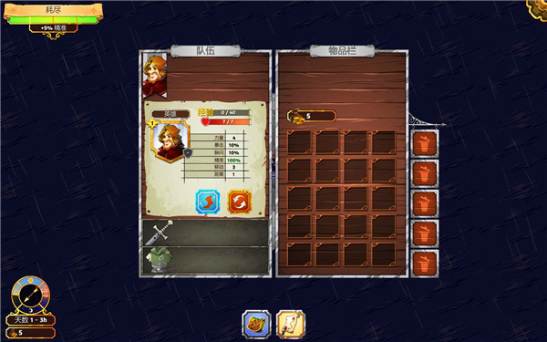 物品栏可以查看英雄、佣兵的属性,以及对他们升级;在物品栏中可以使用道具,点击道具之后会出现英雄、佣兵的头像,点击你希望使用道具的角色,就可以使用这个道具。