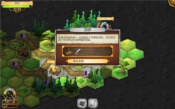 step1.在起始位置可以与小丑对话,向他获取游戏教程。然后可以去到西面英雄的家中拿到生命药剂、敏捷药剂、布料、金,这里无需探索时间。然后去到北面离家不远处的洞穴中,可以选择花费2小时或9小时进行探索,随后能够获得菇。