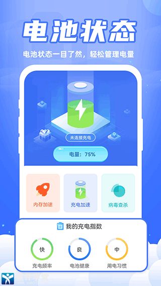 充电赚钱app是一款可以轻松赚钱的手机充电服务管理软件应用,它可帮助用户实时管理手机电池充电状态,让你的手机充电速度可以更加快速,还可在充满电的情况下为你自动断电,保护手机充电安全。
