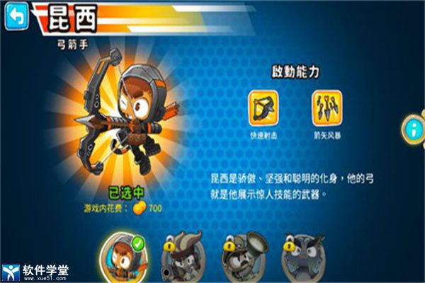 1、猴子:猴子就好比其他塔防游戏中的防御塔。