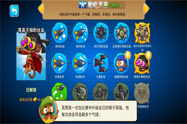 1、猴子们拥有二十中标志性升级,激活技能,打败凶残的气球