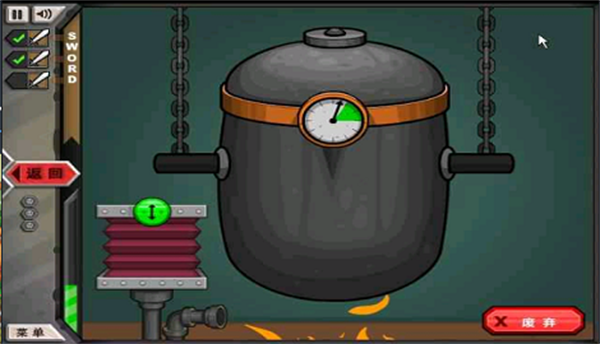 4、游戏内一共给玩家提供四个制作平台,在操作台中玩家需要选择一个金属,慢慢的向下拉拉链均匀注入模具中,如果你拉的太快,金属可能泄漏,无法铸造出良好的剑