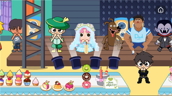 休闲的单机游戏,游戏采用了Q版的设计画风打造的。进入游戏里面玩家会出现在一个生日聚会里面,这里面有很多人来参加聚会,桌子上也有很多美食,你可以通过移动桌子上的美食来分配给这些朋友吃,只要把美食递到他们嘴边他们就会自动开吃,你的朋友种族也有很多,比如吸血鬼,小绵羊还有大黄狗等,也可以通过点击他们进入场景来去冒险,你可以想去哪就去哪,也可以去寻找一个项目或者去经营自己地店,如果想去玩的话可以去游乐场里面玩,也可以去理发、做饼干、采水果之类的玩法。想切换探险的话乐意去购买探险要准备的装备来做准备,场景也有1自由度也很高,而且也没有时间限制的。喜欢兔小萌世界完整版快一起来玩吧!
