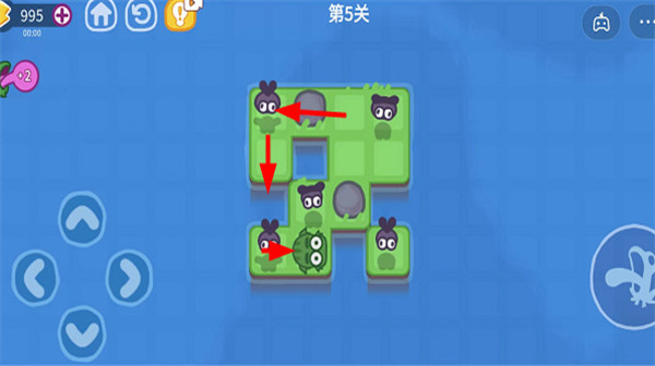 4、然后我们沿着箭头的方向移动,就能吃掉另外两只蚊子。
