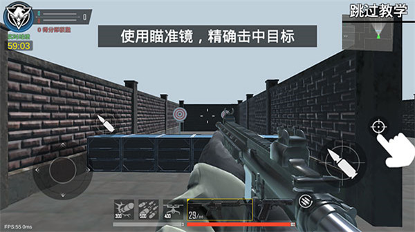 4、到达指定地点后,点击开火按钮练习射击开枪击中标靶
