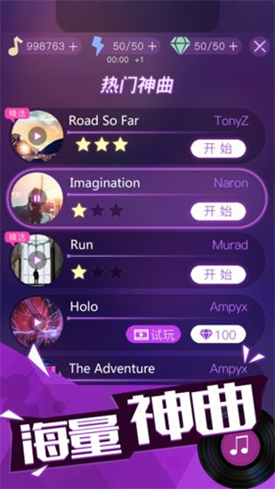 1、解锁更多歌曲关卡