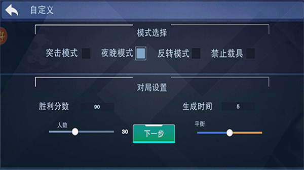 7、在自定义中,玩家还可以自定义游戏的模式、分数、时间等