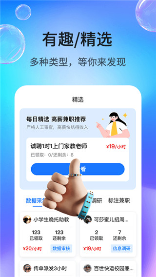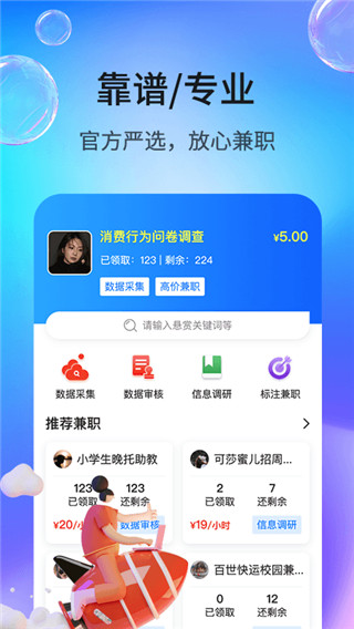 1、靠谱兼职:官方严格筛选兼职企业,放心兼职,工资有保障
