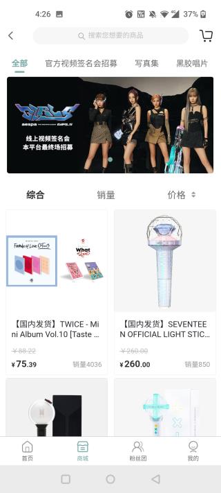 购物软件,该软件主要服务于广大追星族,为他们提供了海量的明星签名专辑、成员写真、周边产品、黑胶唱片等等,在这里可以购买到韩国直邮的各种优质专辑内容,还有非常大量的明星同款、爆款联名、限量发售等潮货,网罗全球潮流店铺,用户可以根据自己喜好和自身所需来自由选择购买,在这里买的商品都是100%正品有保障,物流进度实时可查,货物状态一目了然,所有商品提供一站式便捷到家服务,给用户构建一个安全可靠的购物服务平台。同时kms音像店app最新版还实时更新全球潮流资讯,用户能够在这里了解掌握更多潮流趋势,第一时间共享最新明星热门商品,新的偶像资讯信息热门头条全部一网打尽,还有超多折扣好礼,感兴趣的小伙伴快来下载体验吧!!