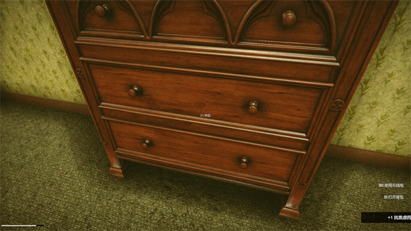 1、第一人称的游戏视角,阴森恐怖的房间里,去到处搜集有用的道具