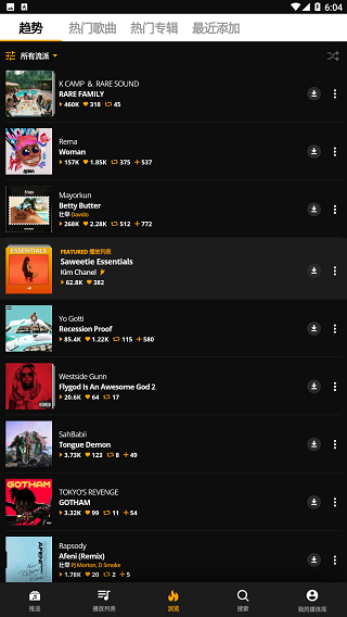 audioMack是一款超好用的免费音乐播放器软件,该软件内容丰富,拥有海内外众多精选优质音乐歌曲资源,多种不同类型品质歌曲,rap、嘻哈、电子音乐等等,都可听你所听,享你所唱!