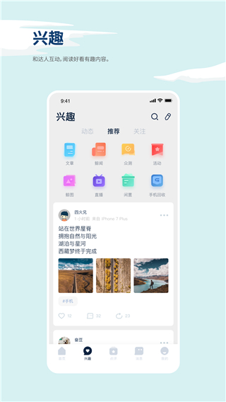 2、兴趣:分享你的生活日常,每一种声音都被倾听得到