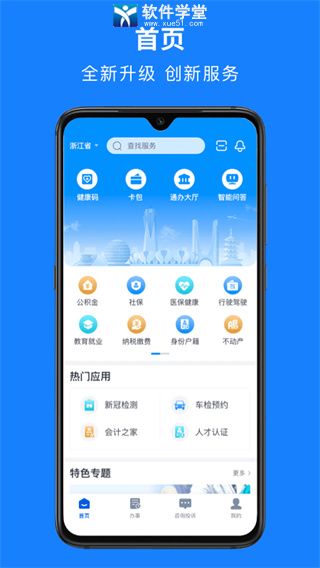 浙里办app最新版是一是智能便捷的政务服务平台,主要服务于广大浙江人民群众,为其提供了丰富的特色服务功能,如公积金查询、社保查询、医保健康、纳税缴费、教育就业、身份户籍、违章处理,等多项服务全面覆盖健康、教育、信用、公安等多领域的服务,全面整合了政府相关部门和公共事业单位的相关服务资源和权威信息,实现足不出户就能在线高效办理政务,享受智能化便捷的办事服务,还可以随时随地查看办事进度,让用户线上就能办理诸多业务,免去了线下去各部门的繁琐程序,一键式将繁琐的流程前置在指尖轻松解决,从而真正实现让群众办事少跑腿、不排队,为用户带来了极大的便利,大大节省了市民们办事的时间。