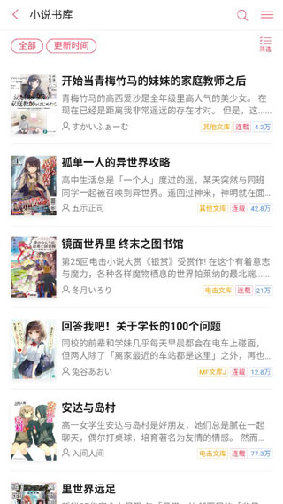 哔哩轻小说app官方版是专为广大热爱看轻小说的小伙伴量身打造的一款专业优质的手机阅读平台,该软件汇集了丰富的轻小说资源,它收录了全网国内外热门轻小说,同时内含的题材种类繁多且分类清晰明确,涵盖了都市、恋爱、搞笑、异界、推理、幻想、科幻、后宫、同人等多种类型资源,用户可以根据自己的兴趣爱好随意挑选阅读,还可以将关键词输入到搜索栏中,它便会智能快速的帮你在小说库中精准找到你想要得书源,还有各类排行榜,满足用户的一切需求。
