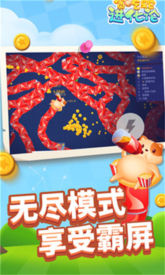 达尔文曾经在探索生物链结构的同时提出过“物竞天择,适者生存”这么一条食物链生存法则,那么呢今天小编带来了一款类似于这个理论相符合的游戏-贪吃蛇进化论官方正版,在这里你需要灵活的运行走位技巧,围剿并吃掉对方,使得自己变得更加强大。在游戏刚开始你可以通过相同属性小蛇合成来得到更高等级的贪吃蛇,解锁新的皮肤让玩家们去选择,有的的皮肤需要获得更高的成就才能获得。同时,游戏在画风上还是非常清晰的,玩家需要通过控制摇杆走位你的小蛇,吃掉地图上金币、经验,就会变长,然而地图上面可不止你一条蛇,还会有别的玩家同时在线,所以说你在成长的同时也要注意,千万别撞到其他玩家的蛇身上,要不然到头来你就只能功亏一篑,不过你可以利用巧妙的走位让蛇身被别人撞上,这样你就可以吃掉对方收集的金币迅速变长,直至你成为这个地图上面最强大的存在。