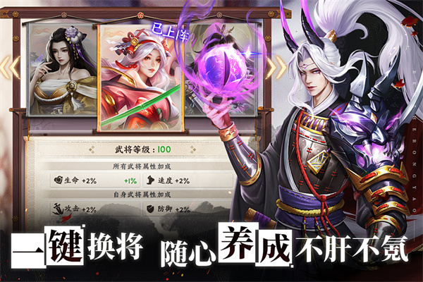 2、独特的阵营,轻松的策略不伤脑筋。收集名将,不要为多维修炼而刷牙。