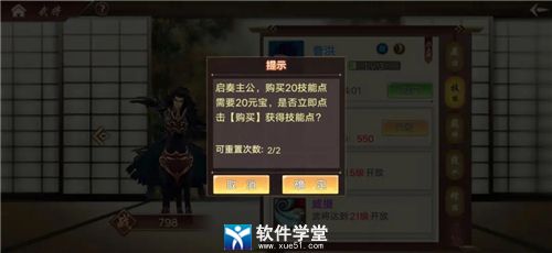 角色升级会增加技能点数,技能点数可进行升级技能。如需重置技能可以点击购买即可重置,就可以重新选择新的强力技能进行升级了。