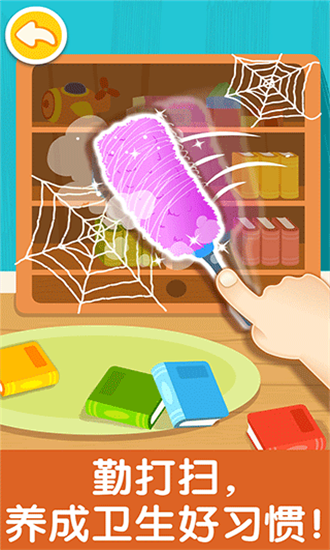 1、三岁以上的宝宝都可以轻松上手,没有很麻烦的操作,通过手指的点击就能把房子打扫干净