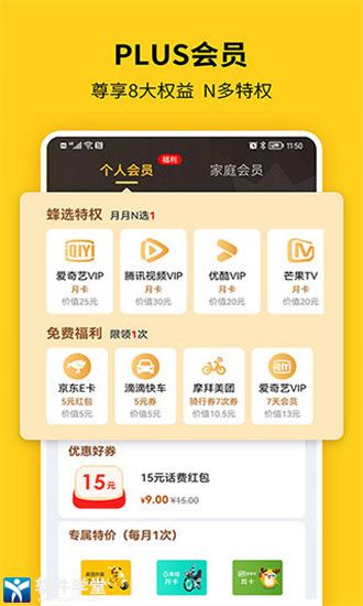 1、可以在蜂助手app里购买话费或者流量都能获得超高的折扣