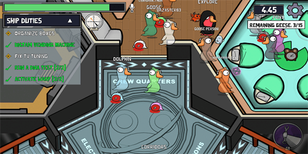 这是一种正常模式,鹅必须完成一定数量的任务,并且所有任务都完成了,而鸭子必须破坏或杀死所有的鹅才能赢得比赛。