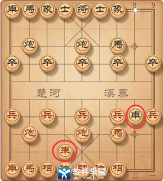 4、红方车平移到宫格边,黑方车过河捉双兵;