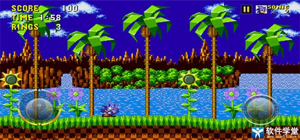 1、在本站下载安装好游戏,进入后左下角按钮左右滑动控制索尼克移动向左向右跑。