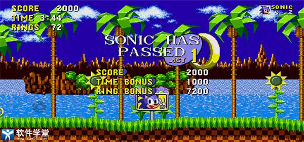 6、一直向前,直到第一关结束,带领你的索尼克继续冒险吧!