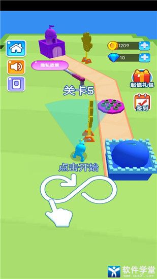 1、超多关卡可以体验,将前方障碍在这里摧毁,完成游戏内的任务