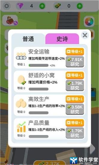 1、玩家需要不断地升级和自动化工厂,这样才能在相同的时间里产出更多的蛋,赚取更多的钱。