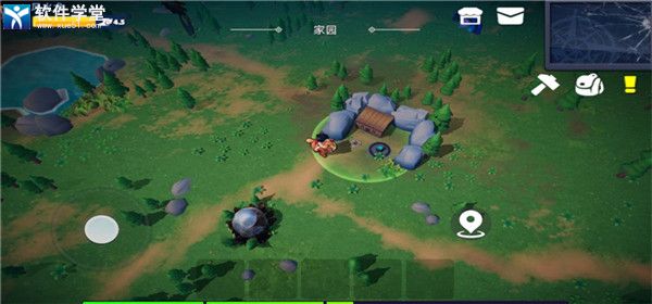 6、现在大家就可以穿上衣服拿上武器出去打怪了。这里给大家科普一下大概的地图的布局,一开始新手最好是去左边这个浅草滩的地图,怪物等级低,难度不高,如果被打可以直接吃红果子回血,前期升级快,很快就可以到达5+级,之后大家可以回家造一点储物箱,把东西都储存一下,然后去右边的这个小树林,这里的怪物比较厉害,大家要小心一点,尽量步步为营,当物资装备比较齐全后,大家可以去家园的左上,有一个叫石坑的地图,这里面石矿和铁矿较多,但是怪物攻击较高,大伙也要小心对待。