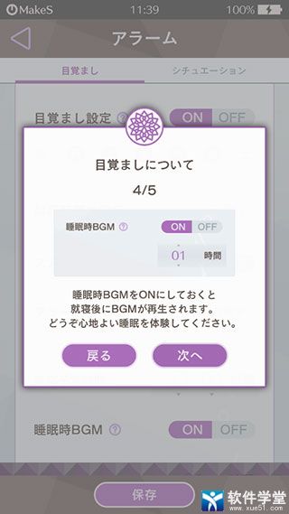 4、睡眠时把BGM设为ON的话,睡觉后BGM会再生,请体验舒适的睡眠。