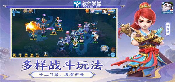 1、丰富门派设定:包含了由封印、辅助、物理、法术四大体系组成的共有十二个门派,上百种技能供你挑选,合理的搭配可以打造一支强大的队伍。