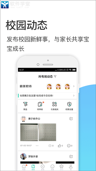 掌心宝贝园丁版app是一款针对学生、家长和教师的校园办公类APP,能够帮助更好地实现校园办公,解决一些学生和家长难以解决的学习和生活问题。掌上园丁神奇的地方在于它可以将家长与老师之间的监护工作和交谈分类处理,其拥有的功能非常强大,可以提高学生的学习成绩,帮助老师更好的分类处理学生信息,并且在学生的安全方面也拥有很高的安全性,这大大的提高了学生的安全保障能力。总的来说,掌心宝贝园丁版app具备的功能非常的丰富,功能强大,安全性也非常高,对于学校老师、学生和家长而言都是一款不可多得的智能工具,它能够有效提高校园监护和教学管理水准,打造的平台可以让家长放心,老师省心,园区安心,多维一体发展,用的上的快来下载吧,也可以到我站下载同套软件使用。