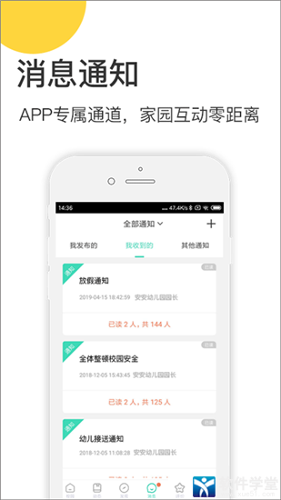 6、班级通知:全面取代纸张,短信及口述,免费发布图文公告,家长实时接收