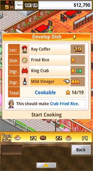 2、饭店经营模拟游戏,开发新菜和食材探险,努力成为人气食堂;